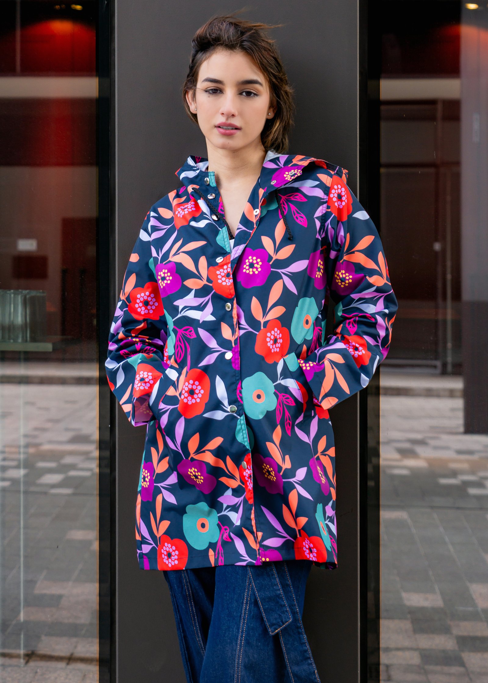 Raincoat Maxi print fondo azul